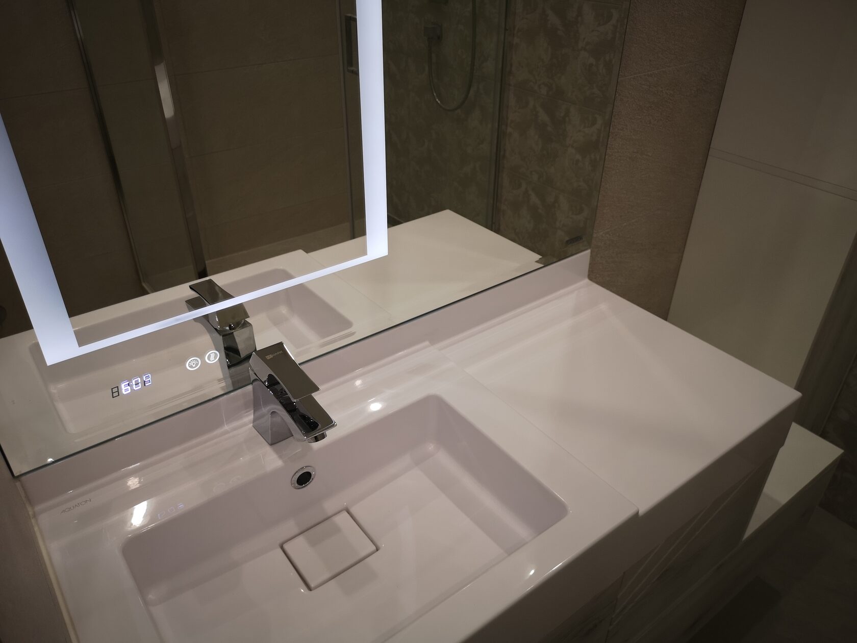 Чистовые материалы. Ванна, раковина, унитаз, смесители, полотенцесушитель, плитку, обои, ламинат, линолеум, двери, зеркала вы присматриваете и покупаете сами, это логично. Я могу помочь подсказать с размерами, и выделить время для закупки чистовых материалов вместе с вами.